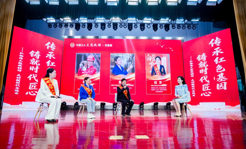 全国劳动模范、全国道德模范、大国工匠年度人物、全国优秀科技工作者、省地矿局探矿工程首席专家、安徽理工大学二级教授朱恒银,全国劳动模范、全国三八红旗手、大国工匠、中华技能大奖获得者、全国优秀班组长、安徽叉车集团有限责任公司数控车工特级技师董慧,全国先进工作者、国务院政府特殊津贴专家、安徽省特级教师、安徽省最美教师、马鞍山市红星中学正高级教师桂芳等3位劳模先进代表,在访谈中分享了他们坚守岗位、攻坚克难的奋斗历程。