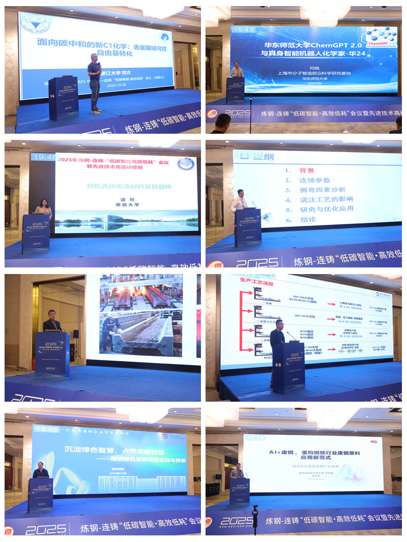 大会报告环节,马钢集团原党委书记兼董事长丁毅、中国贸促会冶金行业分会顾问王定洪、南昌航空大学副校长邹建平、安徽大学朱满洲、大连理工大学陶胜洋、东华大学乔锦丽、武汉大学陈胜利、浙江大学范杰、华东师范大学何晓、南昌大学谌烈、宝钢中央研究院陈志平、马钢有限公司沈昶、新兴铸管左小坦、南京钢铁车马俊、用友集团赵东伟、我校工程研究院张立强、化学与化工学院刘明凯、江苏省钢铁行业协会陈洪冰、中冶华天张晨等19位专家作了大会报告。报告围绕钢铁行业节能降碳与高质量发展、智能炼钢及连铸技术、化学反应过程数字化与智能化设计、新能源催化体系、AI在冶金化工领域的应用等主题展开。