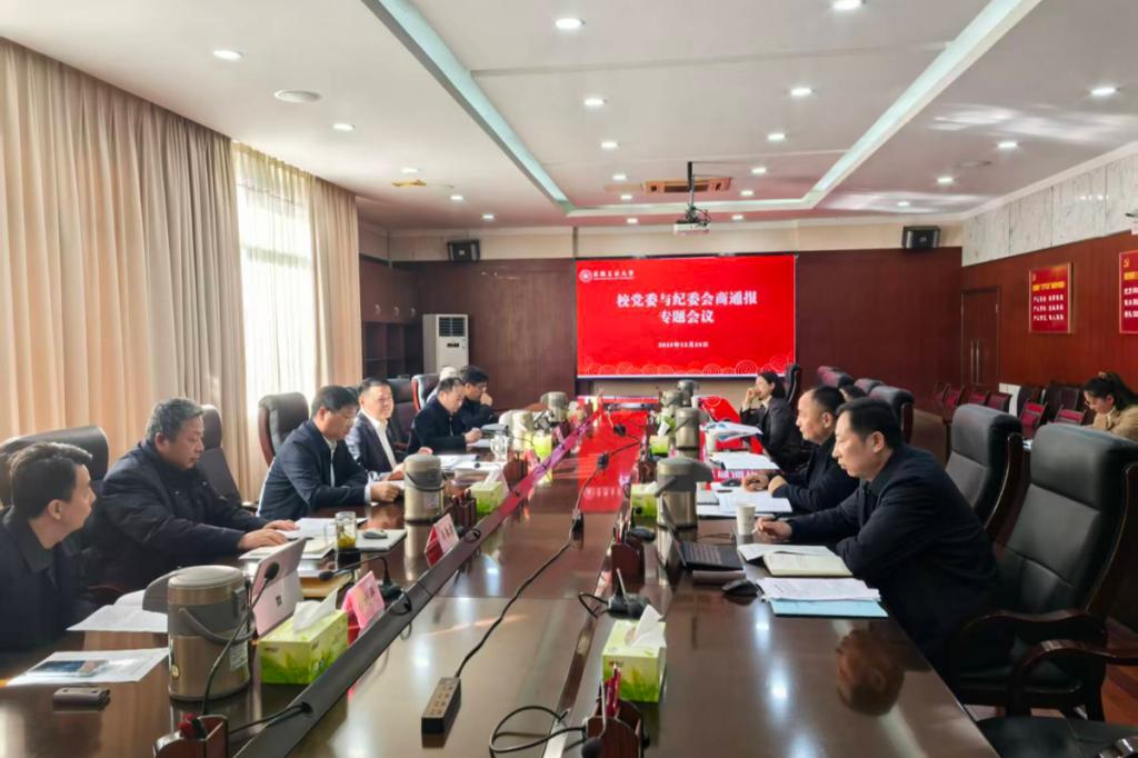 12月26日上午,学校召开党委纪委会商通报专题会。校党委书记陆林主持,校党委副书记、校长曾杰,校党委领导班子成员出席。副校长郑啸、纪委办相关负责人列席。