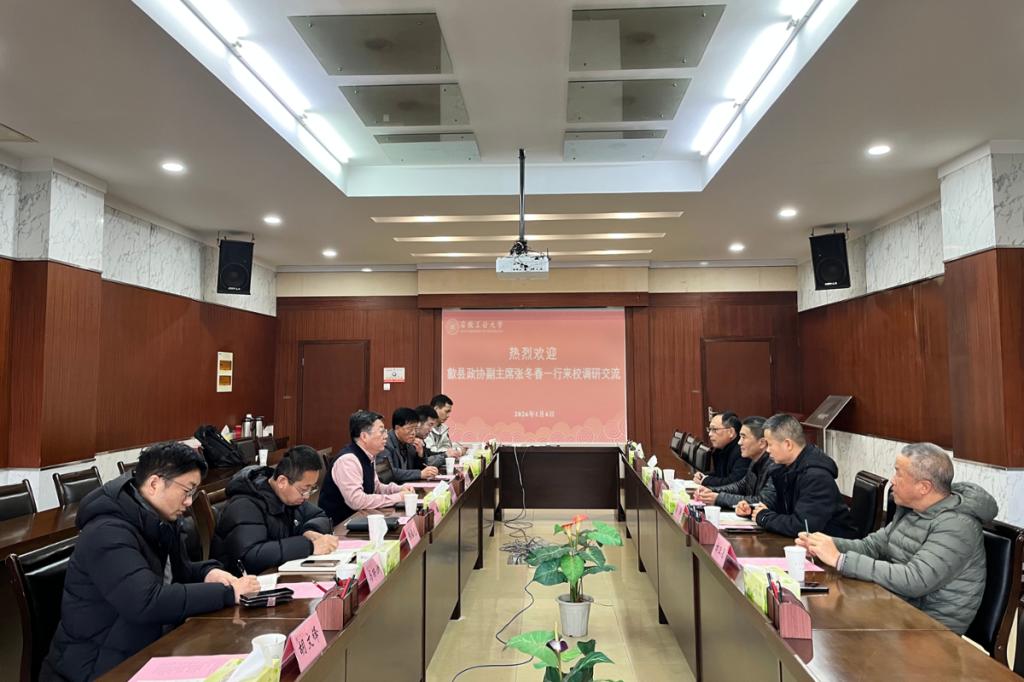 1月6日下午,歙县政协副主席张冬春一行来校调研交流。校党委常委、副校长张世宏出席。歙县投资促进局、科商工信局、开投集团负责人,以及我校科研院、冶金工程学院、材料科学与工程学院、机械工程学院等单位负责人和教师代表参加。