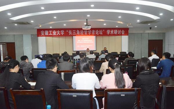 5月21日,由我校“安徽创新驱动与产业转型升级发展研究中心”主办、商学院承办的亚洲中文字幕在线乱妇首届“长三角经管学者论坛”暨产业转型与中国经济发展学术研讨会在佳山校区举行。副校长祖明教授到会致辞。本次论坛吸引了上海财经大学、华东师范大学、华东理工大学、上海海事大学、南京财经大学等高校的中青年经济学者与会,商学院骨干教师和部分研究生参加了研讨会。