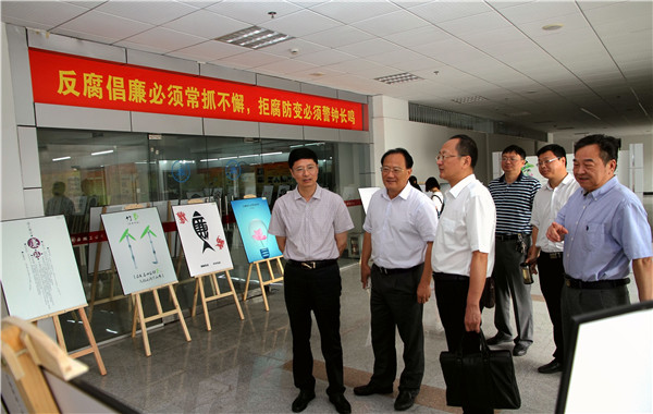 会后,滕祁源、王光虎一行参观了我校第二届校园廉政文化作品展。 (文/汪芝泉 图/王旭东 审核:王俊 邹珏)