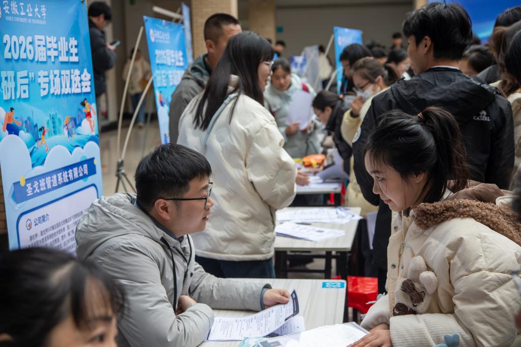12月22日,我校在秀山校区举办2026届毕业生“研后”专场双选会。大学生就业创业指导中心负责人、各学院党政负责人、毕业生辅导员深入现场,主动对接用人单位,介绍学院专业特色,积极推荐毕业生。